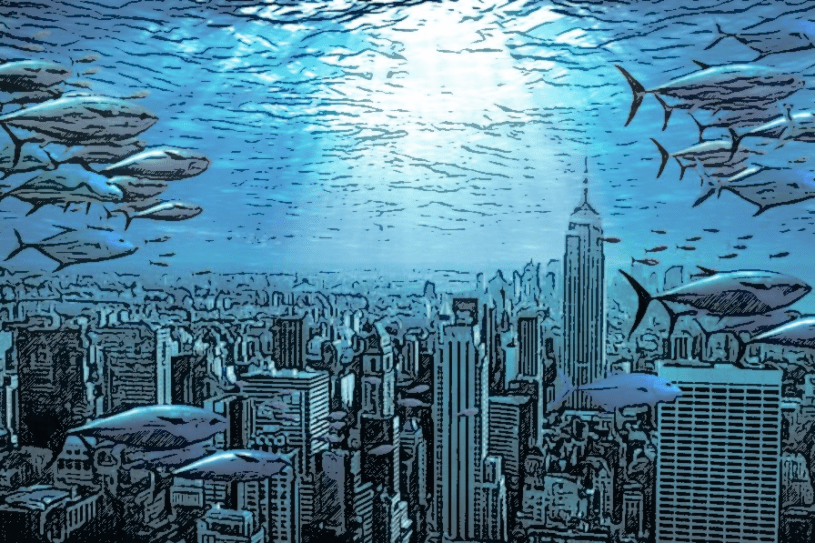 Deniz suyu yükselmeye, kıtaları lokma lokma yutmaya devam ediyordu. Okyanuslarda hızla artan termal genişlemede en büyük pay, doğal olarak Grönland ve Antartika’daki buzul erimelerine aitti. Projenin geliştirildiği sene, deniz suyu seviyesinde ortalama dört santimlik bir artış gerçekleşti.